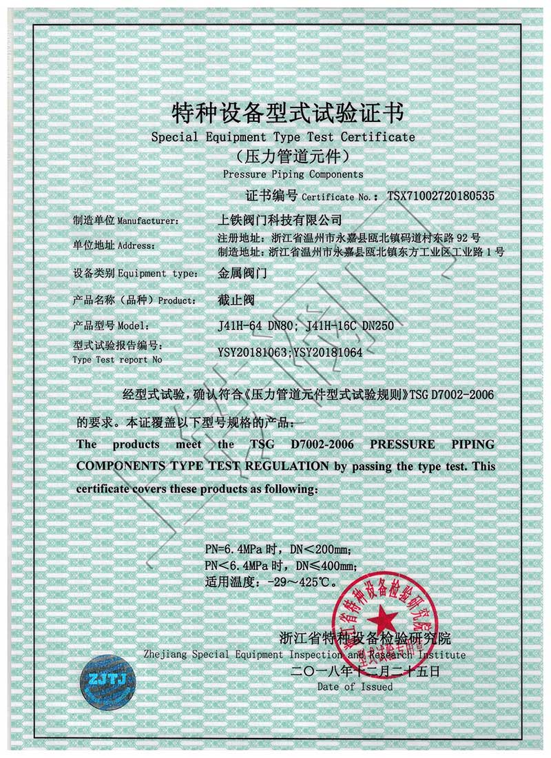 上鐵閥門科技有限公司是一家集設(shè)計、制造、銷售、服務(wù)于一體的專業(yè)閥門廠家,主要生產(chǎn)鑄鋼、鍛鋼、低溫鋼、不銹鋼等材質(zhì)的閘閥、截止閥、球閥、止回閥、節(jié)流閥、排污閥、蝶閥、氨閥等十二大品種,規(guī)格從DN10—800mm口徑,公稱壓力從PN1.0—16Mpa,500多個規(guī)格,并可根據(jù)客戶要求配置直齒輪傳動、蝸輪蝸桿傳動、氣動、電動、液動、氣液聯(lián)動裝置。適用介質(zhì)為:水、蒸汽、油品、燃氣、硝酸類、醋酸類等,適用溫度-196℃~550℃,產(chǎn)品廣泛用于石油、制鹽、化工、冶金、電力、酒類、制藥、造紙等行業(yè)。